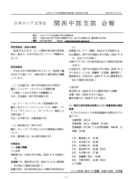 2025年度第75回全国大会(東京大学)では、2025年度日本ロシア文学会大賞を ...