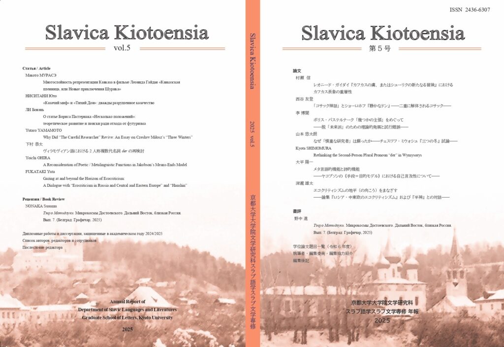 「Slavica Kiotoensia:京都大学大学院文学研究科スラブ語学スラブ文学専修年報」5号が刊行されました。
